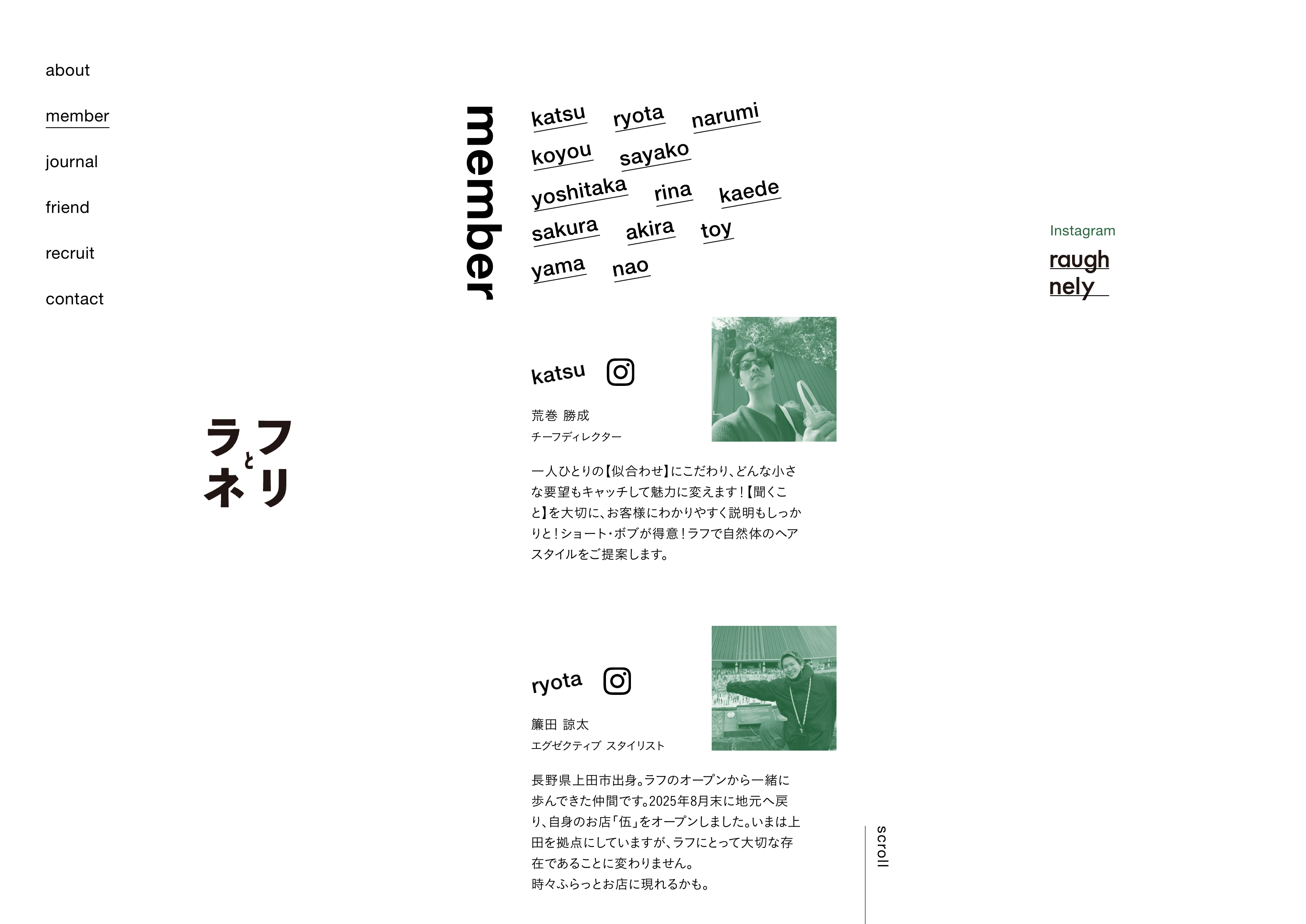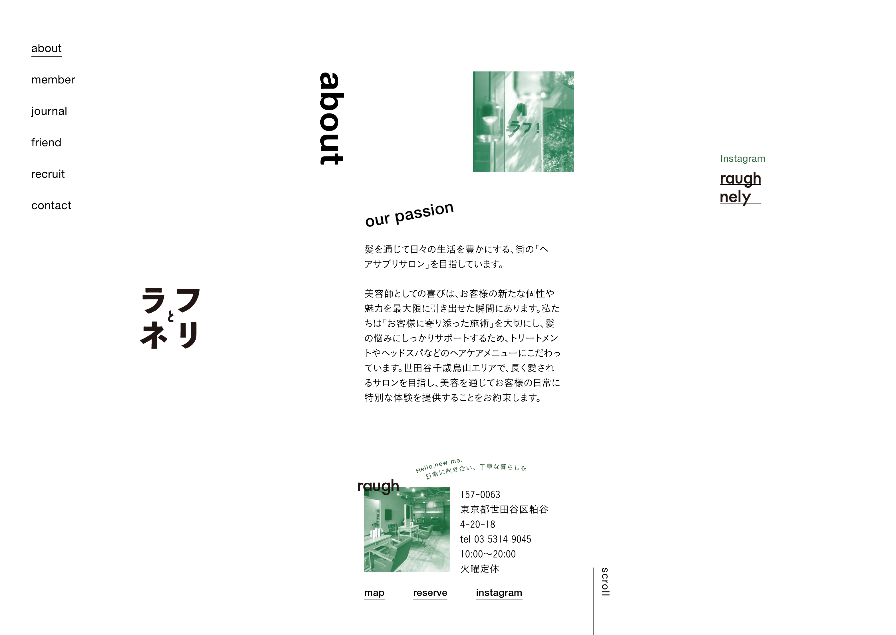 千歳烏山に店舗を構えるサロン「ラフ」と「ネリ」のWebサイトを制作しました。 モノトーンに揃え、ミニマルな構成とすることで、サロンの持つ美意識を表現しました。 またメインビジュアルに使用した写真の撮影も行っています。 -2024